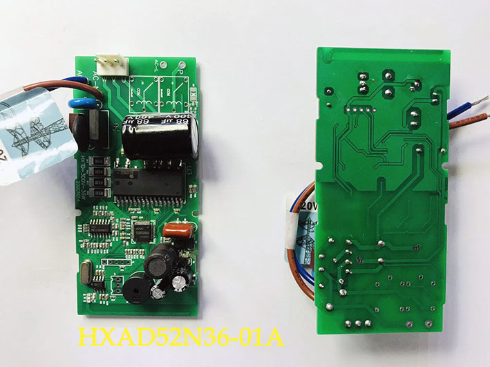 P/N:HXAD52N36-01A feature: IPM TYPE Dimension: PCBA diameter(max): 110*52MM(+1mm ) Input Voltage: AC:100~260V POWER: 36Watt RPM: 0-360rpm IR/rf Control: 5 Grade controll by IR or rf Remote controller Buzzer: yes Driving mode: No sense FOC sine-wave Assembly method: External additional fuction: with LED LIGHT SW CONTROL(OPTION) protection: over temperature protection, over current protection, over voltage protection; out of phase protection, soft start Speed control: PWM or VSP Super silent high efficency Heat dissipation structure design | |